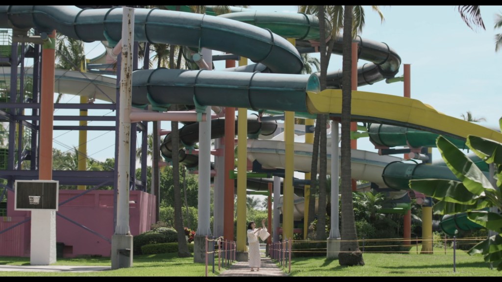 Prima el paisaje, retratos de lugares tocados por el paso del tiempo en distintas etapas y a distintos niveles de intimidad. Pasamos de conocer las formas de vida y acercamiento a la identidad japonesa de comunidades enteras de Nikkei (emigrantes japoneses y su descendencia), a escuchar relatos más pequeños como la nieta que lamenta el silencio de sus antepasados, y busca, en la imaginación, re-construir las ruinas de su historia familiar. Las imágenes, a veces más descriptivas, juegan con la perspectiva de los espacios y los seres que lo habitan, capturando las minucias del territorio que hibrida la presencia de dos culturas. Otras veces, son puestas en escena que, a través de la yuxtaposición del cuerpo en movimiento y el espacio, crean alegorías a los sentimientos que desbordan a las palabras. Sumie usa el lenguaje del cine como acercamiento cualitativo a las vivencias particulares y generales de la diáspora.