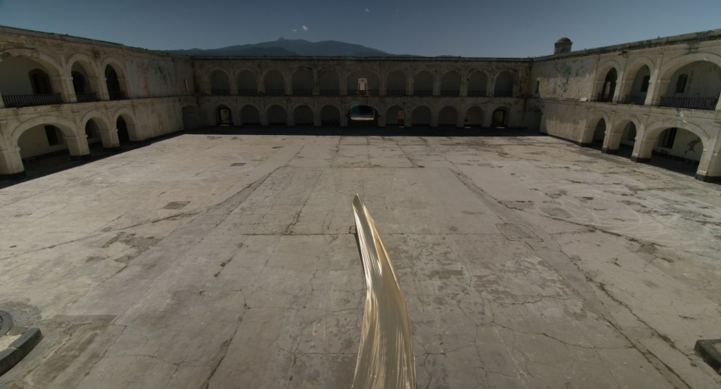 También usamos como referencia el cine de Ozu, poner la cámara muy cerca del piso para tener los cielos muy grandes y el punto de vista bajo, que también le da una sensación de lo teatral. Muchos de los cuadros son muy planos y esa era parte de la idea, que aludiera a lo teatral. El teatro y la danza japonesa, desde lo clásico pero también moviéndose hacia algo más interpretativo y personal. En el final de la película su formato se deschonga un poco, digamos. Empezamos muy formales en el formato documental, en esta danza Noh que es como muy rígida, y la película va transitando hacia el capítulo de la Ciudad de México que yo lo considero una exploración más íntima mía. Asimismo la danza se vuelve una cosa más personal.